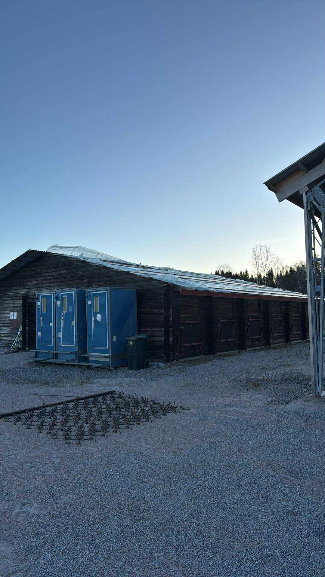 Hagen ligger i lä bakom ett berg, något som tidigare visat sig ge visst skydd mot vinden. Vid stallet däremot står flera stora träd – en risk som vägde tungt i beslutet.